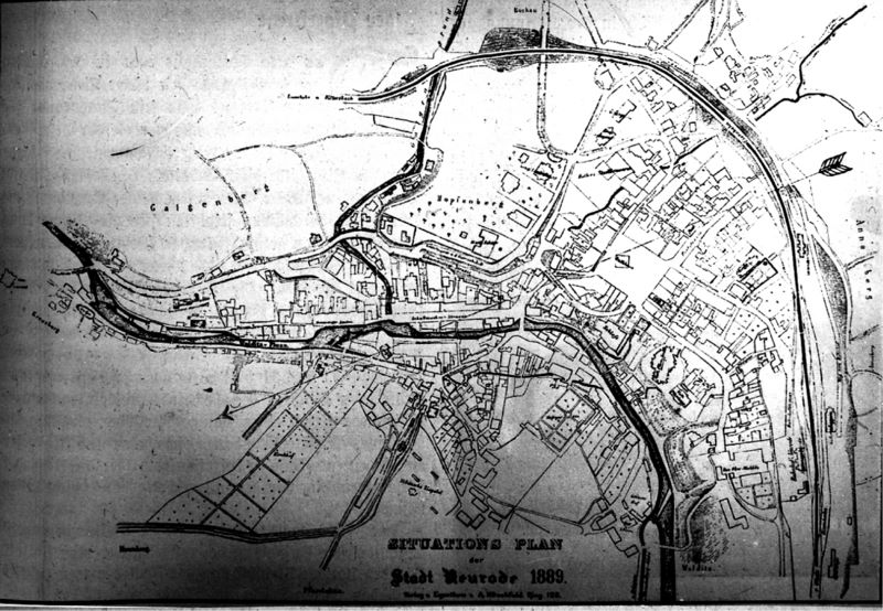 Stadt Neurode 1889), reprodukcja planu publikowanego w: Wittig J., Chronik der Stadt Neurode, Neurode 1937.