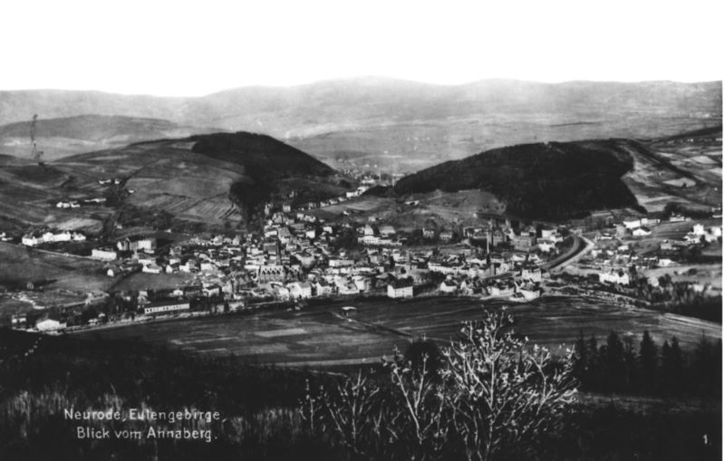 Nowa Ruda, panorama miasta ze stoku Góry Św. Anny (Neurode, Eulengebirge, Blick vom Anneberg), reprodukcja pocztówki