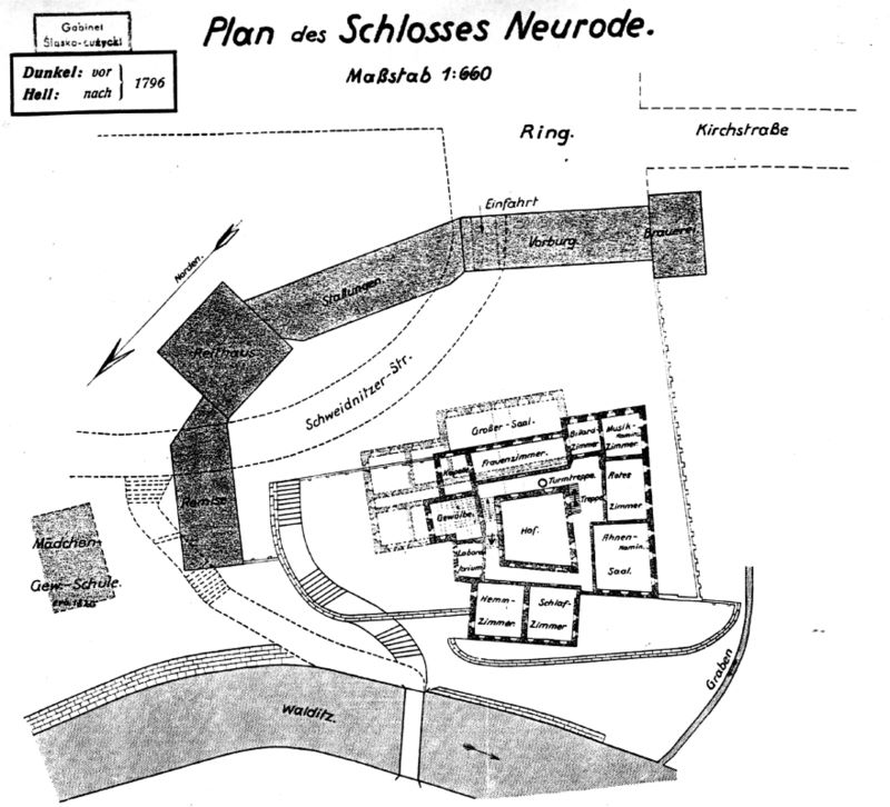 Neurode), reprodukcja rysunku z: Braumühl, Das Schloß Neurode im Wandel der Zeiten, Glatzer Heimatblätter,