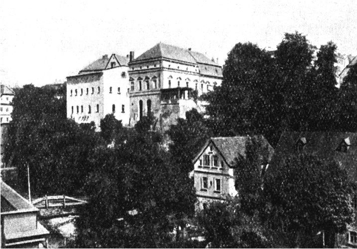 Schloß im 19 Jh., Alter Bau und Flügel Bernhards II), reprodukcja