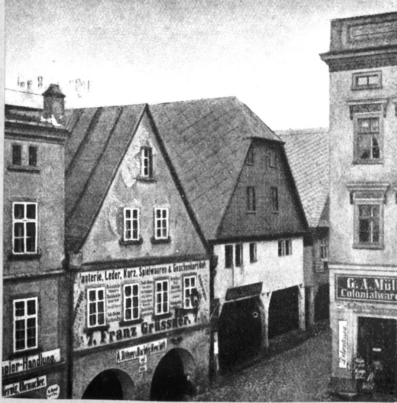 północno-wschodniej pierzei rynku, stan z ok. 1889 r. (Die Ost-Ecke des Ringes im 19 Jahrhundert), reprodukcja