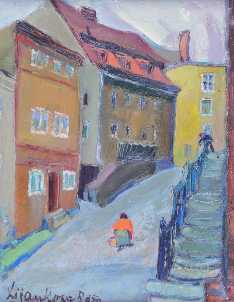 Before Farbisz-Kijankowa arrived in Jelenia Góra, she pursued her passion in Vilnius. Despite the birth of her first son, Mirosław (who would later become an economist), she intensively devoted herself to painting. Róża Farbisz-Kijankowa perfected her artistic skills. She loved easel painting, landscape, still life, and she also had a fascination with portraits. Her paintings, usually created from nature, are peculiar records of her travels, both near and far, capturing the atmosphere of places in the footsteps of her experiences, emotions, and admirations.