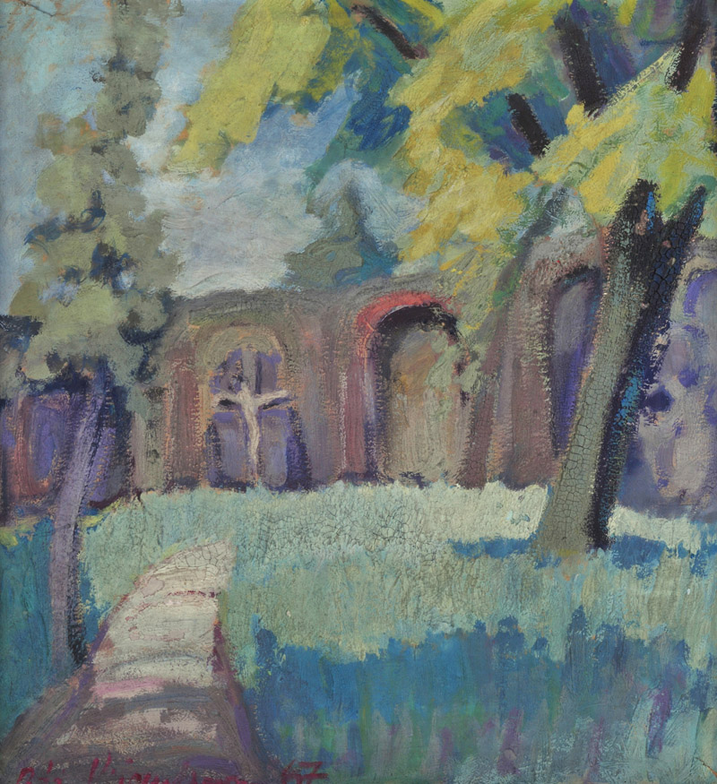 In her earlier postwar paintings (landscapes from the area around Ustka), her palette was subdued. She avoided harsh contrasts. Twenty years later, her use of colour became richer, her contours stronger, and her tones more vivid (landscapes from the areas around Karpacz, Zakopane, Kudowa). And yet, always the same lines. The colour in all her paintings shares a common trait: relief created by sweeping brushstrokes, a kind of surface quality defined by the thickness of the paint. This reveals the artist’s deep awareness of her art. She did not seek out dramatic subjects or subtexts. Her dramatic nature was a result of the spontaneity of her painting and the freshness of her perspective. Alongside the brush, she used a palette knife, respecting the peculiarity of that tool, its gesture, and the movement of the hand. The temperament of the painter is visible in her works until the very end. Recalling her paintings evokes a constant reflection that the artist’s maintained a deep faith in the connection between art and nature, as well as a great respect for the culture of colour and the entire tradition of “pictorialism.” As I. Klisowska also emphasises, based on her conversations with the artist, she retained the memory of a woman: