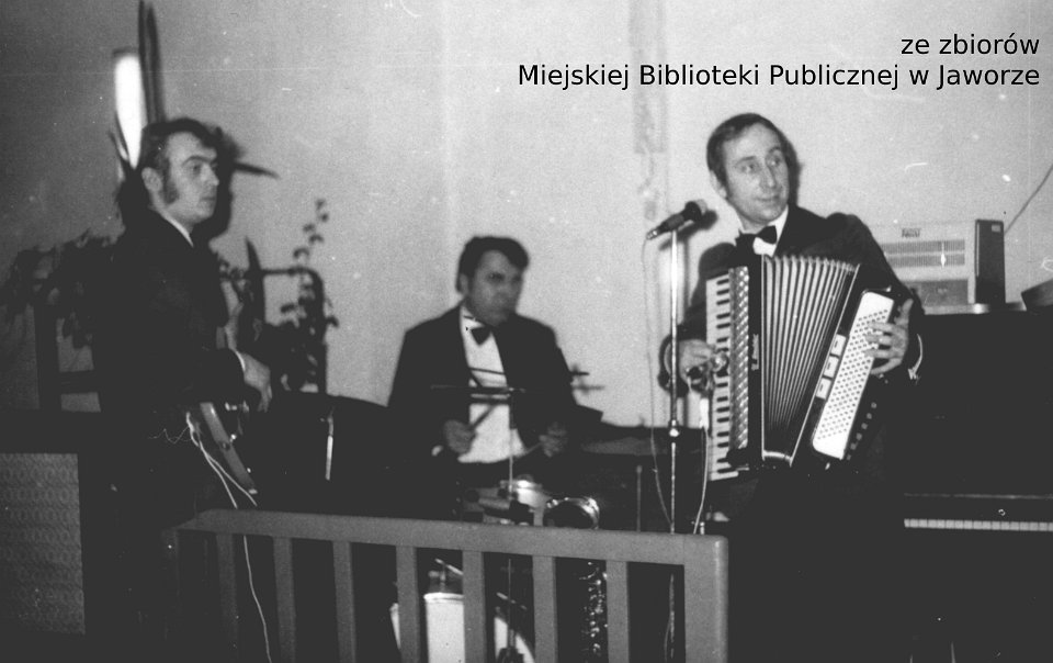 Od lewej: Zdzisław Bagiński (gitara basowa), Stanisław Zawalny (perkusja), Jerzy Osolinsz (akordeon i śpiew)