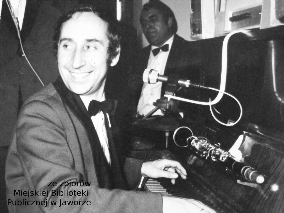 Na pierwszym planie Jerzy Osolinsz (pianino i śpiew), z tyłu Stanisław Zawalny (perkusja)