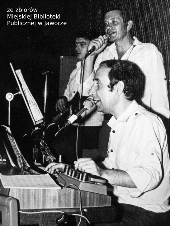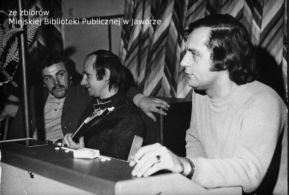 Na pierwszym planie Jerzy Osolinsz (organy i śpiew), za nim Stanisław Duszeńko (śpiew), z tyłu Zdzisław Bagiński (gitara basowa)