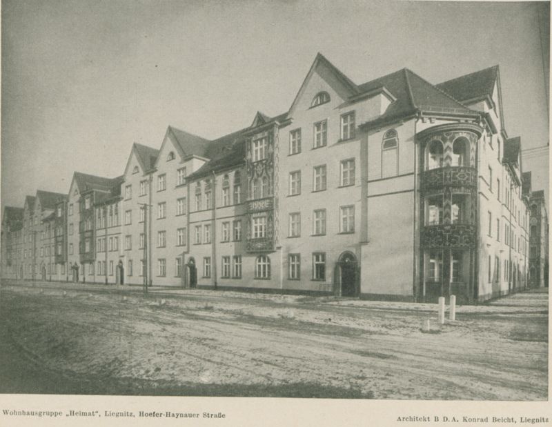 Tom II - Ilustracje -- 148. Legnica. Elewacja domów ul. Krótka 1-11. „Ostdeutsche Bauzeitung”, 1928, r. 26, s. 288