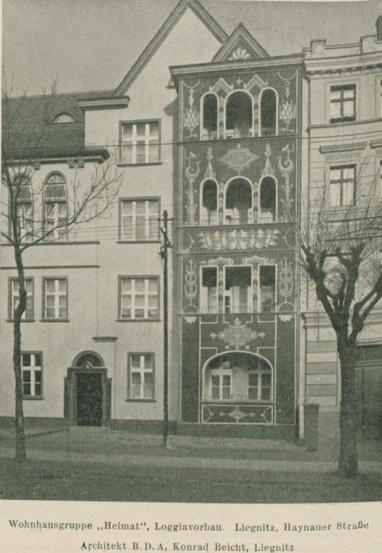 Tom II - Ilustracje -- 31. Legnica. Chojnowska 105. Fasada domu po wybudowaniu. „Ostdeutsche Bauzeitung”, 1928, r. 26, s. 288.