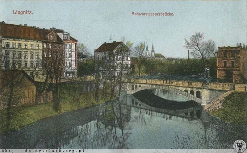 Tom II — ILUSTRACJE -- 108. Legnica. Głogowska — most na Czarnej Wodzie. Liegnitz. Schwarzwasserbrücke. Karta pocztowa z pocz. XX w.