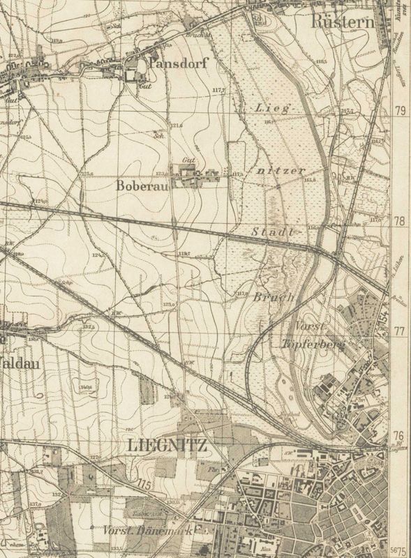 Tom II — ILUSTRACJE -- 25. Legnica. Fragment mapy topograficznej w skali 1:25 000, 1936. Archiwum Map Zachodniej Polski.