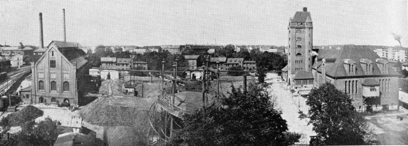 Tom II — ILUSTRACJE -- 256. Legnica. Ścinawska 1 – gazownia miejska. Fot. przed 1925. Liegnitz Goldberg. Das schöne Katzbachtal. Berlin 1925, s. 84.