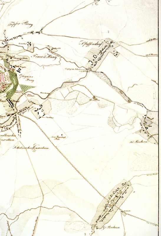 Tom II — ILUSTRACJE -- 5. Legnica. Fragment planu miasta, 1825. Repr. za Atlas historyczny miast polskich, Tom IV Śląsk, Zeszyt 9 Legnica, plansza 22.
