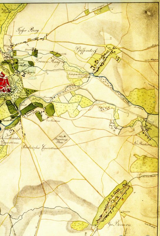 Tom II — ILUSTRACJE -- 7. Legnica. Fragment planu miasta, 1827. Repr. za Atlas historyczny miast polskich, Tom IV Śląsk, Zeszyt 9 Legnica, plansza 25.