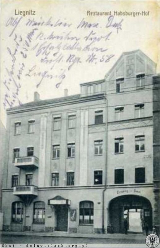 Tom II — ILUSTRACJE -- 65. Legnica. Głogowska 16 — na parterze restauracja Habsburger Hof. Karta pocztowa z pocz. XX w.