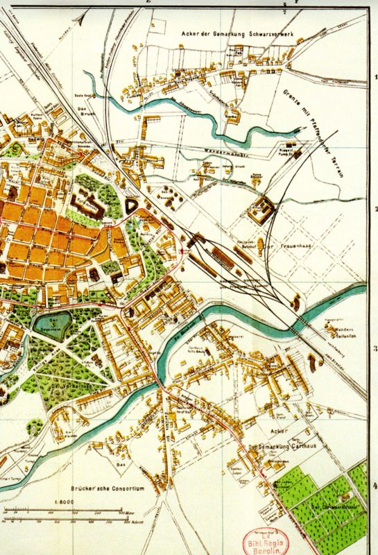 Tom II — ILUSTRACJE -- 9. Legnica. Fragment planu miasta, 1884. Repr. za Atlas historyczny miast polskich, Tom IV Śląsk, Zeszyt 9 Legnica, plansza 28.