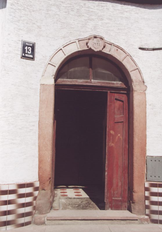 166. Nowa Ruda, historyczny ośrodek miejski, Górne Miasto, ul. Podjazdowa, południowo-wschodnia pierzeja, dom nr 13, portal w elewacji frontowej, nr neg. 1829.