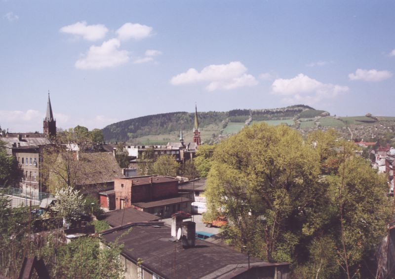 Miasto, panorama fragmentu miasta z nasypu kolejowego na wysokości ul. Armii