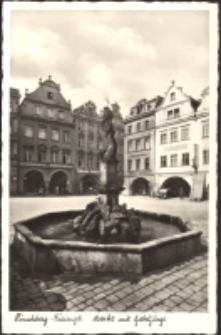 Title: Hirschberg - Riesengeb. Markt mit Gabeljürge [Dokument ikonograficzny]