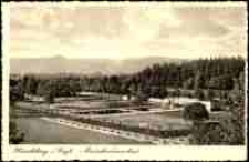 Papier kremowy ; 89x138 ; A: Il. cz.-b. marg. wk. ząbkowany, na marg. tytuł: Hirschberg i. Rsgb. - Freischwimmbal ; R: Sygn.: M/ 1293, 73014, I L 9 ; Widokówka czysta