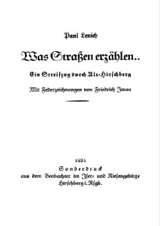 | Lenich, Paul, 2018, Was Strassen erzählen... : in Streifzug durch Alt-Hirschberg [Dokument elektroniczny] | May 10, 2024 |