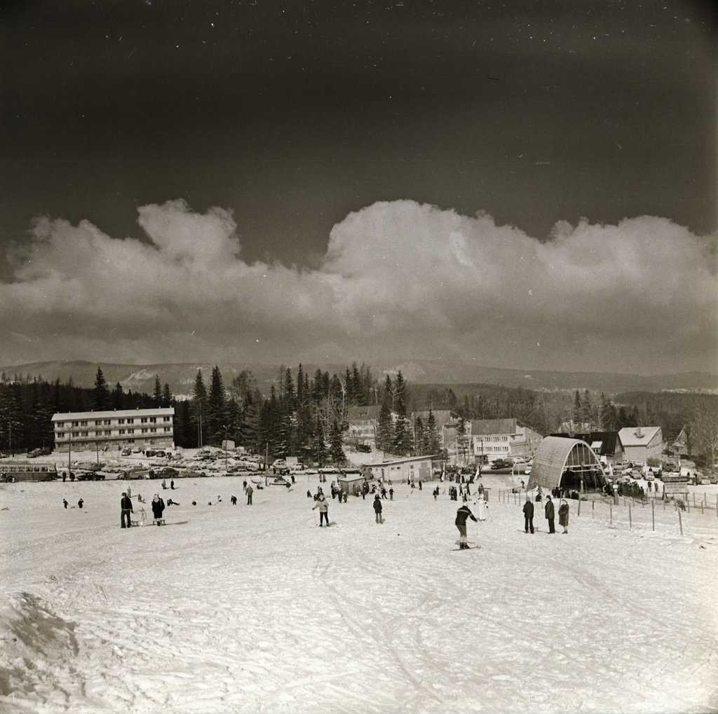 Subject and Keywords:Szklarska Poręba (woj. dolnośląskie, pow. karkonoski, gm. Szklarska Poręba) ; Karkonosze (góry) ; Szrenica (góra ; 1362 m. n.p.m.) ; Wyciąg na Szrenicę (Szklarska Poręba) ; Wyciąg krzesełkowy ; Turyści ; Zima ; Adamski, Zbigniew (1932- ) ; Fotografia polska ; 1901-2000