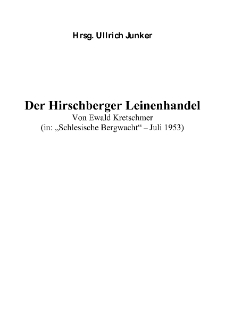 Tytuł: Der Hirschberger Leinenhandel [Dokument elektroniczny]