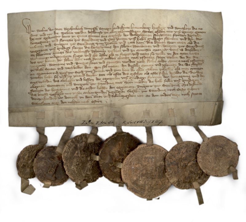- Agnieszka, ks. Śląska, pani Książa, Świdnicy i Jawora, stwierdza, że Alusza, pisarka miejska w Jeleniej Górze (Hirsperg), sprzedała spadkobiercom Mikołaja Ertmandorf, mieszczanina jeleniogórskiego, folwark położony między Twardzielem (Harte) a Jelenią Górą.