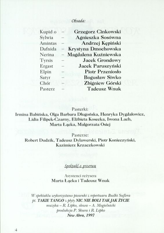 [6]U. Liksztet. Program spektaklu „Komedia pasterska”. Jelenia Góra, 1997, s. 14