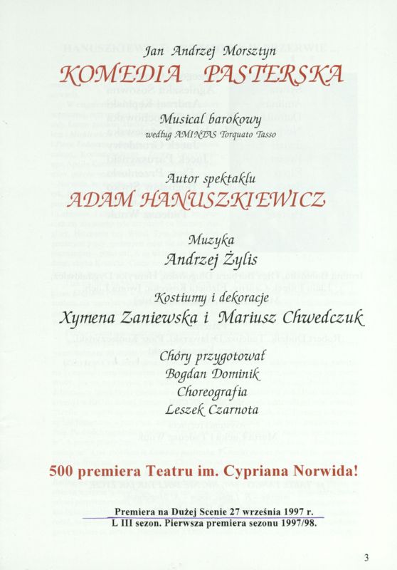 [6]U. Liksztet. Program spektaklu „Komedia pasterska”. Jelenia Góra, 1997, S. 14.