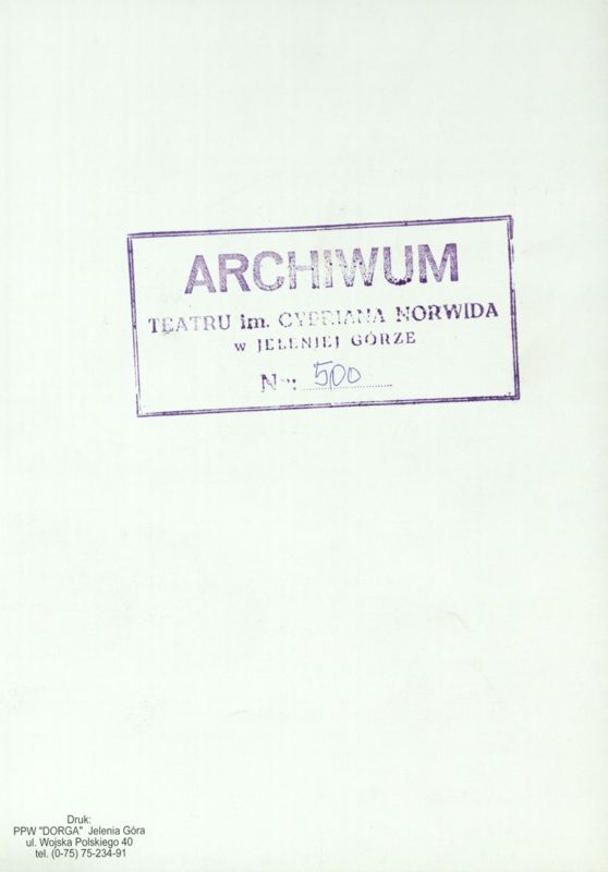 - Il. 1-20. Programm des Spektakels „Komedia pasterska”. Archiv des Cyprian-Kamil-Norwid-Theaters in Jelenia Góra.