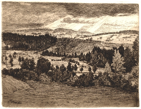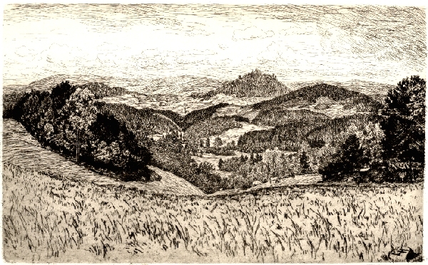 - Erich Fuchs, Blick nach Fischbach, Radierung, 21. Grafik in der Sammlung Das Gebirgsdorf Der Besitz von Riesengebirgsmuseum in Jelenia Gora.