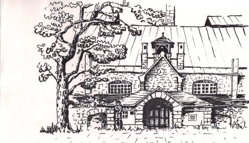 - Rysunek tuszem, widok Huty „Julia” w Szklarskiej Porębie, archiwum rodzinne