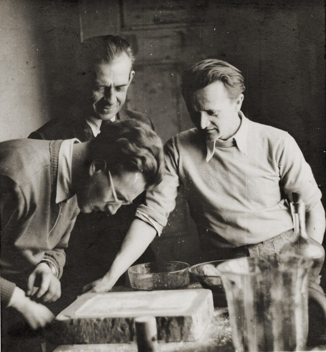 - Witold Turkiewicz z kolegą Zygmuntem Janotą podczas zajęć na studiach, archiwum rodzinne