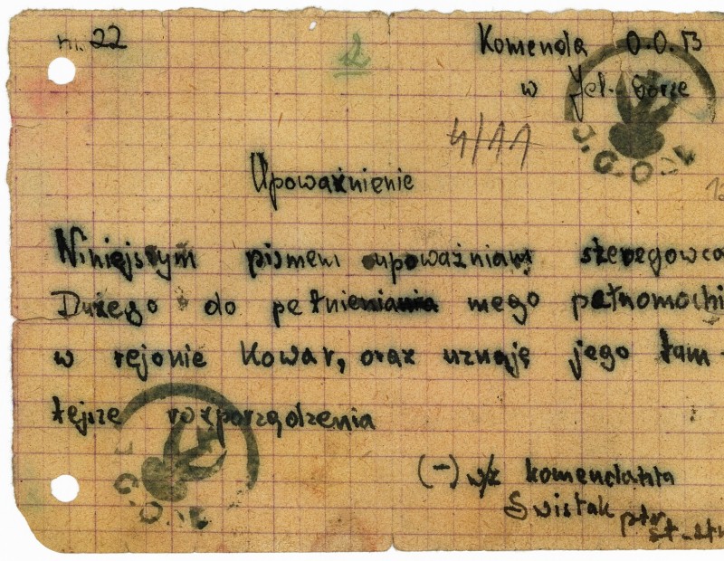 The organization was exposed by accident in October 1949, when a member of the school branch of the Union of Polish Youth found in the calendar of one of the conspirators a handwritten order by “Świstak” stamped with the “OOB” seal. He passed the find to the ZMP chairman, Julian Sobota. That same day a leaflet bearing Chyliński’s name reached the City Committee of the PZPR and then the District Public Security Office in Jelenia Góra.