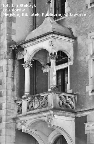 Widok od strony zachodniej na balkon nad wejściem głównym do ratusza.