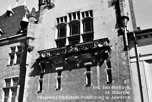 Widok na wykuszowy balkon znajdujący się na północnej ścianie ratusza.