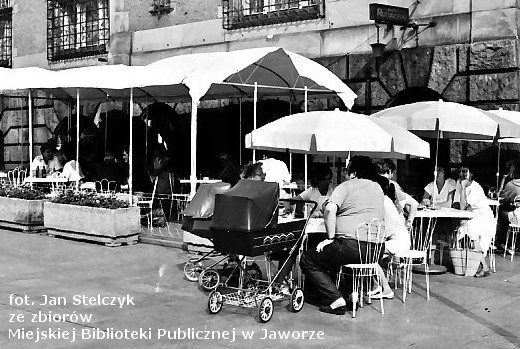 Widok na mieszkańców przybyłych do Piwnicy Ratuszowej działającej w piwnicach ratusza od strony zachodniej.