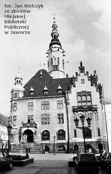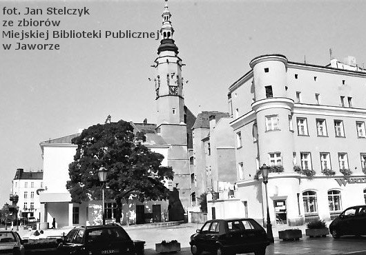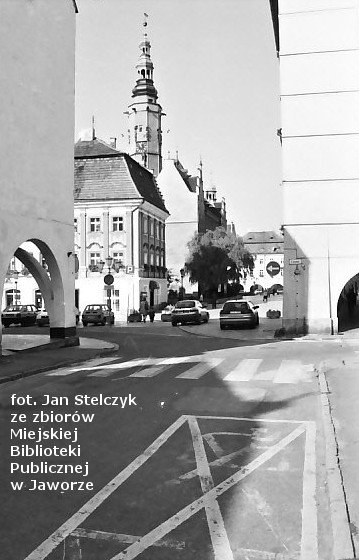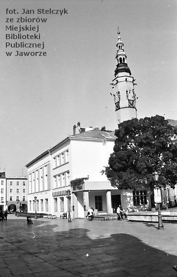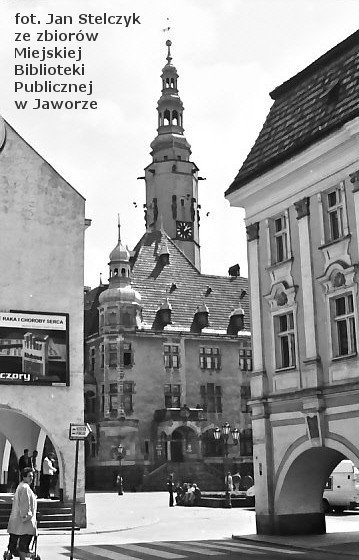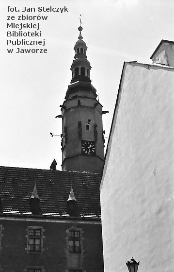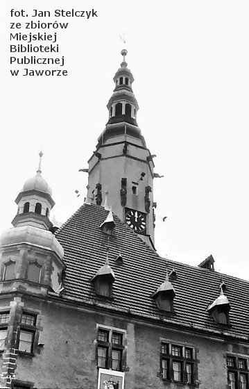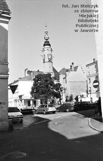 Widok na wieżę ratusza od ulicy Legnickiej.