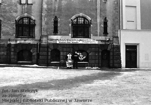 Widok na wejście do piwnicy ratusza, gdzie mieści się kawiarnia.