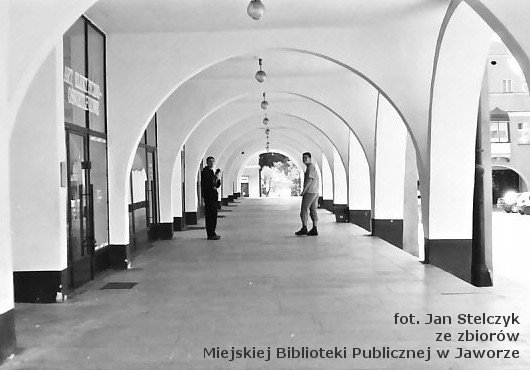 Widok wzdłuż filarów pierzei wschodniej w kierunku ulicy Klasztornej. Po prawej stronie w tle widoczny fragment wschodniej części pierzei południowej.