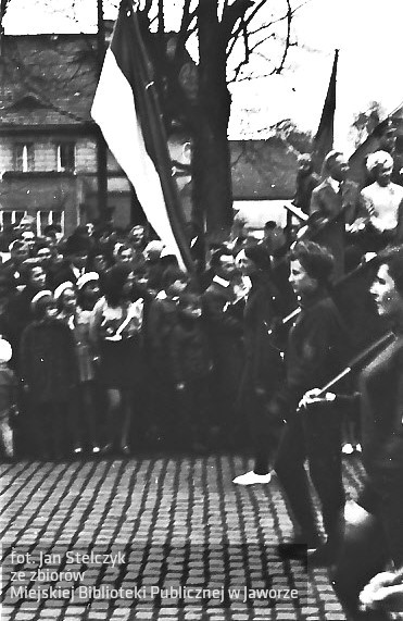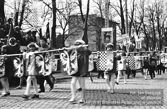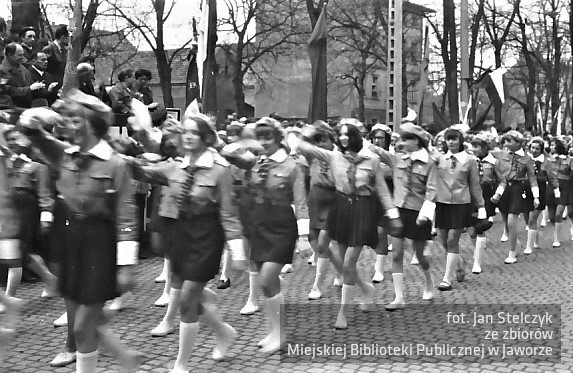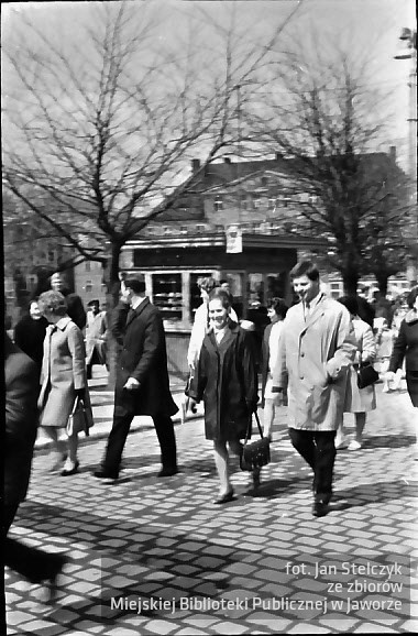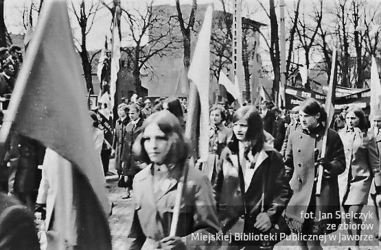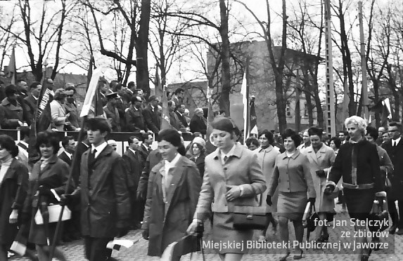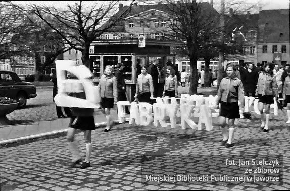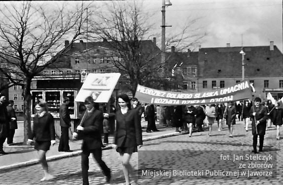 1 1 maja 1970 Jawor, Plac Wolności Obchody 1 maja - Święto Pracy Uczestnicy pochodu zmierzający w kierunku rynku. Uczniowie przyzakładowej Zasadniczej Szkoły…