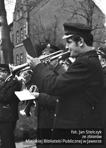 9 1 maja 1970 Jawor, ul. Wrocławska Obchody 1 maja - Święto Pracy Muzycy z Jaworskiej Orkiestry Dętej pod kierunkiem Klemensa Grzybowskiego naprzeciwko trybuny…