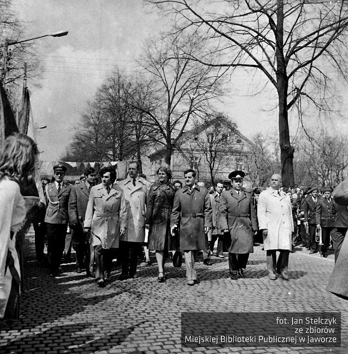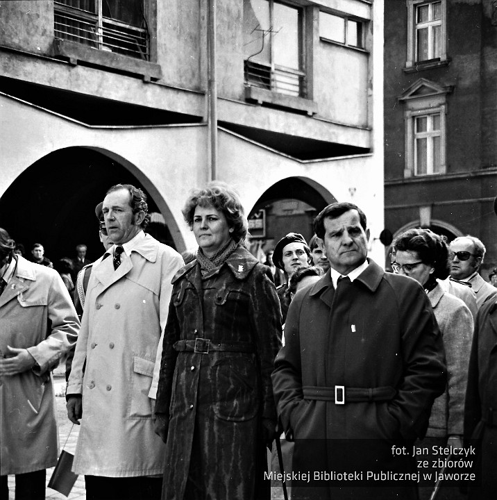 4 1 maja 1976 Jawor, Rynek Obchody 1 maja - Święto Pracy Przedstawiciele władz miasta i partii oczekujący na wymarsz. Od lewej: Władysław Wojtkowiak, (?),…