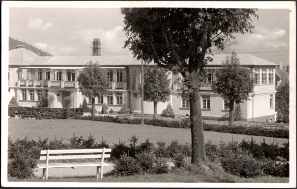 Description:A: Fot. cz.-b., marg. wk. ; R: Wydaw., tytuł: Bad Flinsberg im Isergenirge Radiumbad, napis: Echte Photographie, Aufnahme Dipl.-Ing Gottman, dopis: c.d. - Domu Zdrojowego Wieniec Zdrój Świeradów, linie adresowe ; Papier fotograficzny ; 90 x140 mm ; Widokówka czysta
