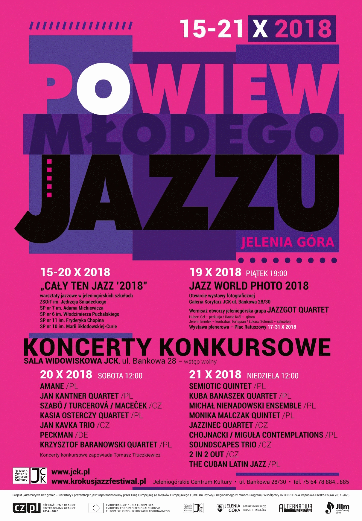 Temat i słowa kluczowe:Jelenia Góra (woj. dolnośląskie) ; Jeleniogórskie Centrum Kultury ; Międzynarodowy Krokus Jazz Festiwal im. Tadeusza "Errolla" Kosińskiego (17 ; 2018 ; Jelenia Góra) ; Powiew Młodego Jazzu (2018 ; Jelenia Góra) ; Tłuczkiewicz, Tomasz ; Amane (zespół muzyczny) ; Jan Kantner Quartet (zespół muzyczny) ; Szabó/Turcerová/Maceček Trio (zespół muzyczny) ; Kasia Osterczy Quartet (zespół muzyczny) ; Jan Kavka Trio (zespół muzyczny) ; Peckman (zespół muzyczny) ; Krzysztof Baranowski Quartet (zespół muzyczny) ; Semiotic Quintet (zespół muzyczny) ; Kuba Banaszek Quartet (zespół muzyczny) ; Michał Nienadowski Ensemble (zespół muzyczny) ; Monika Malczak Quintet (zespół muzyczny) ; Jazziniec Quartet (zespół muzyczny) ; Chojnacki/Miguła Contemplations (zespół muzyczny) ; Soundscapes Trio (zespół muzyczny) ; 2 in 2 out (zespół muzyczny) ; The Cuban Latin Jazz (zespół muzyczny) ; Imprezy muzyczne ; Jazz ; Konkursy i festiwale ; Muzyka ; Warsztaty muzyczne ; Wystawy fotograficzne ; Plakat ; 2001-