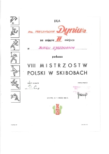 | Dla kol. Mieczysława Dyniusa za zajęcie II miejsca w biegu zjazdowym podczas VIII Mistrzostw Polski w Skibobach | Feb 27, 2025 |